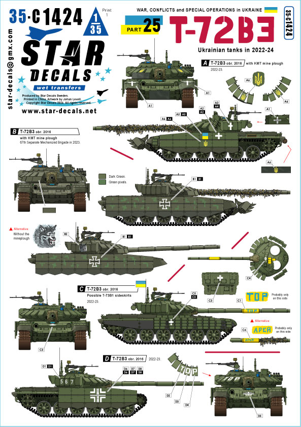 Star Decals - 1/35 War in Ukraine Part 25. Ukrainian T-72B3 obr 2016 in 2022-24.