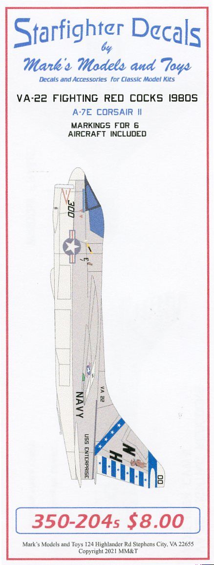 Starfighter Decals - 1/350 VA-22 Fighting Redcocks CVW-11 1980's