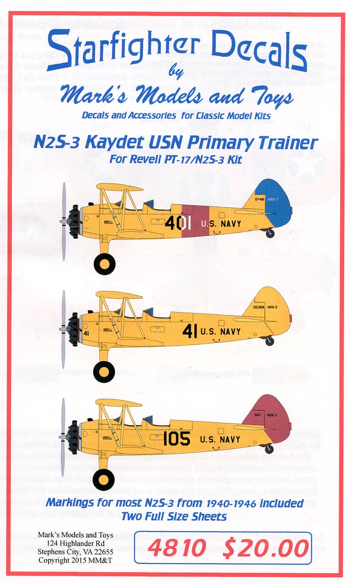 Starfighter Decals - 1/48 N2S Kaydets Two sheets. Designed for the Revell PT-17/N2S-3 kit.