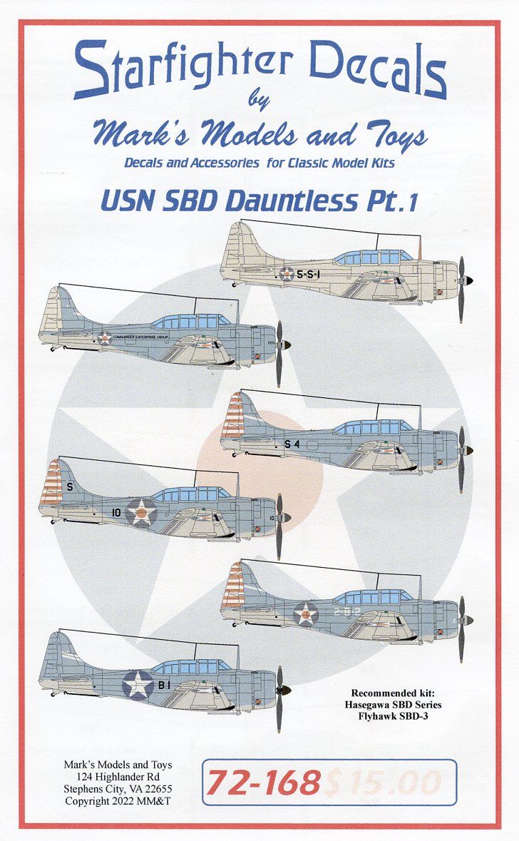 Starfighter Decals - 1/72 Usn Sbd Dauntless Pt.1