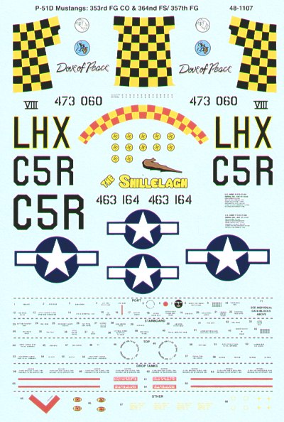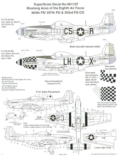 Microscale - 1/48 North-American P-51D Mustangs Aces 8th Air Force (2) 463164 C5-R 357 Fg Co Col J.A.Storch `The Shillelagh', 473060 LH-X 353 Fg Co Col Glenn Duncan `Dove of Peace' Black/Yellow check nose