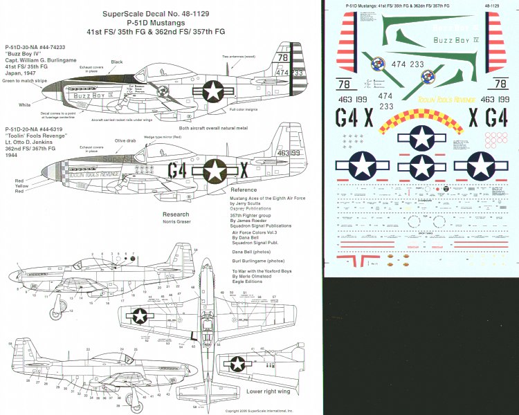Microscale - 1/48 North-American P-51D Mustang (2) 44-74233 41 FS/35 Fg Capt William Burlingame Japan 1947, 44-63199 G4-X 363 FS/367 Fg Lt Otto Jenkins `Toolin Fppls Revenge' 1944