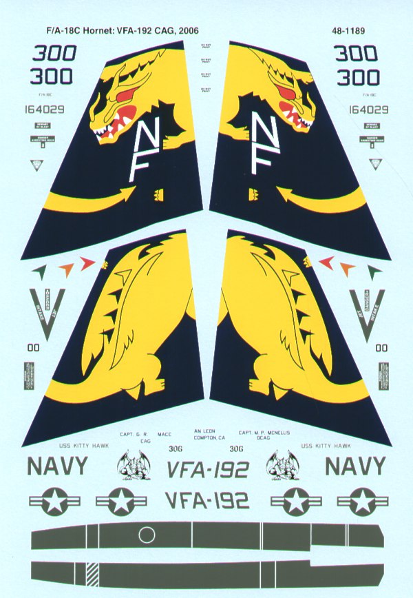 Microscale - 1/48 McDonnell-Douglas F/A-18C Hornet (1) 164029 NF/300 VFA-192 Golden Dragons Cag Uss Kitty Hawk 2006 with spectacular Dragon tail markings