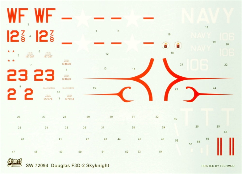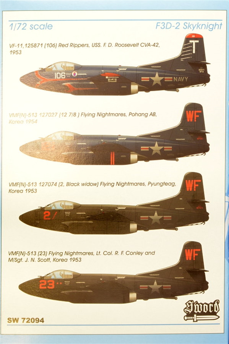 Sword - 1/72 F3D-2 Skyknight VF-11/VMF(N)513 VF-11,125871(106) Red Rippers VMF(N)-513 127027(12 7/8 ) Flying Nightmares VMF(N)-513 127074 (2,Black widow) Flying Nightmares VMF(N)-513 (23) Flying Nightmares New Parts
