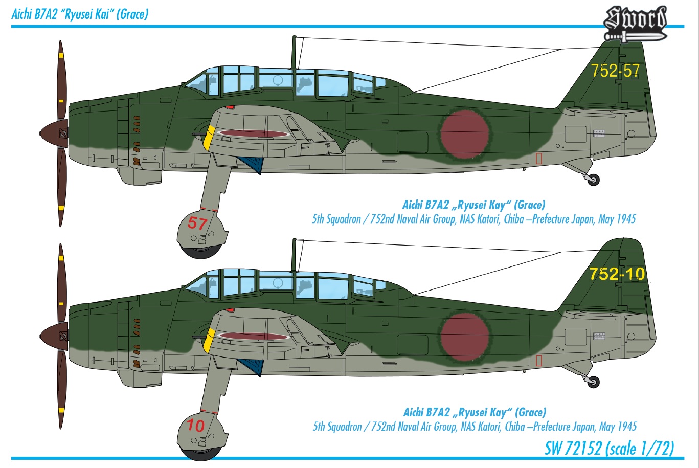 SWORD - 1/72 Aichi B7A2 Grace 2x camouflages