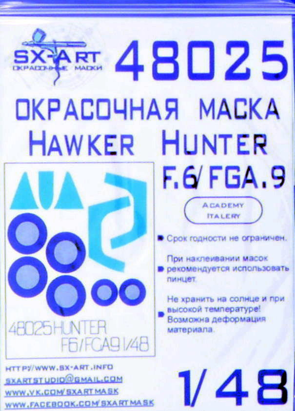 SX-Art - 1/48 Hawker Hunter F.6/FGA.9 canopy and wheel paint mask (for Academy and Italeri kits)