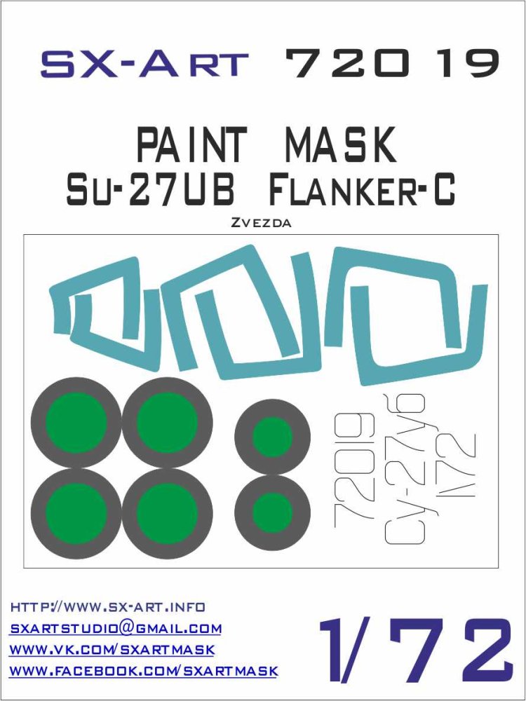 SX-Art - 1/72 Sukhoi Su-27UB canopy and wheel paint mask (for Zvezda kits)