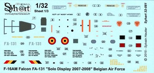 Syhart - 1/32 F-16AM Falcon FA-131 "Solo Display 2007-2008" Belgian AF