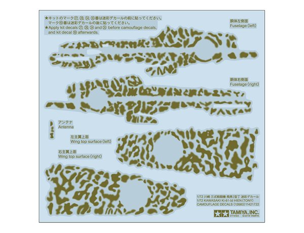 Tamiya - 1/72 Kawasaki Ki-61-Id Hien camouflage pattern decals.
