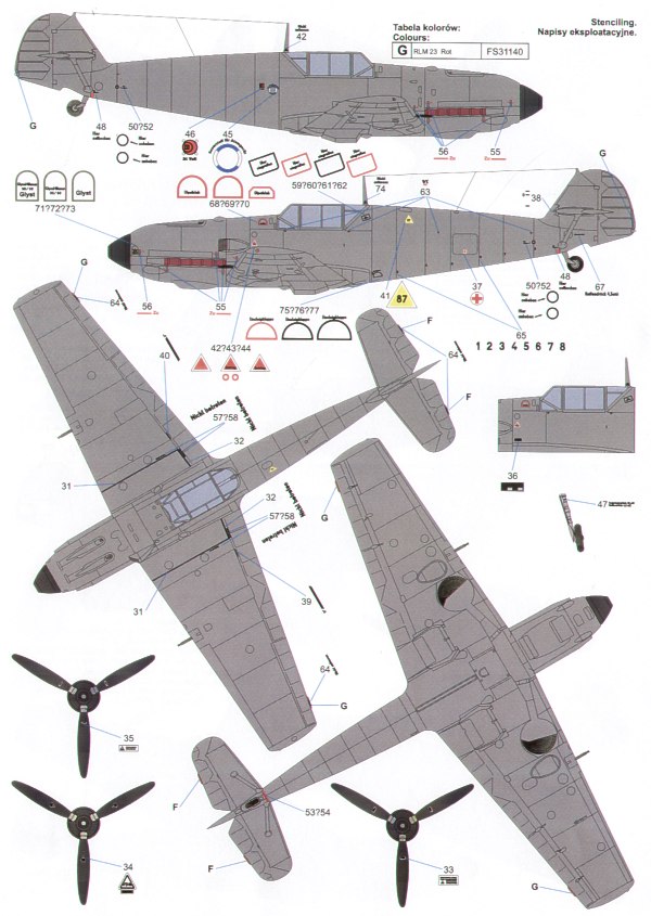 Techmod - 1/32 Messerschmitt Bf-109E-4 (4) White 13 3/JG 51Oblt Walter Oesau 1940 yellow nose, Yellow 2 III/JG 2 Richthofen Oblt Helmut Wick Staffelkapitan, Double Black Chevron I/JG 2 Richthofen Hptm Helmut Wick Gruppenkommandeur, both Beaumont-le-Roger 1940, Black Chevron Stab II/JG 3 Oblt Franz von Werra. Inc Canopy mask