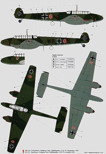 Techmod - 1/32 Re-printed! Messerschmitt Bf-110C (3) M8+GK 2/ZG76 Wolfgang Flack Staffelcapitan Sept 1939, U8+BB 1/ZG26 Gunther Sprecht France 1940, LN+IR 1.(Z)/JG 77 Theodor Weissenberger Norway 1941.