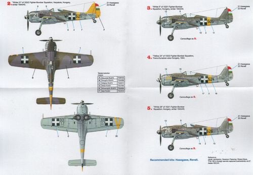 Techmod - 1/72 Focke-Wulf Fw 190F-8 "Yellow 54" of 102 Regiment, Hungary, winter 1944/45. "White 21" of 102/2 Fighter-Bomber Sqdn, Varpalota, Hungary, Winter 1944/45. "White 5" of 102/1 Fighter-Bomber Sqdn, Hungary, winter 1944/45. "Yellow 24" of 102/2 Fighter-Bomber Sqdn, Trans-Dunabian area, Hungary 1944. "White 26" of 102/1 Fighter-Bomber Sqdn, Hungary, winter 1944/45.