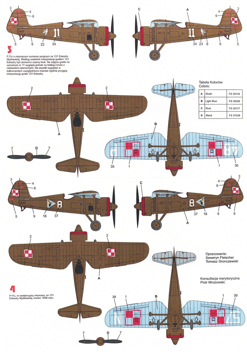 8 White 10 161 Fighter Sqn 1939, White 4 Lt Jan Dzwonek 161 FS, White 11 131 FS, White 8 113FS. White 65 142FS, White 1 112FS, White 9 132FS. all Khaki/Lt Blue