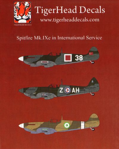 Tigerhead Decals - 1/48 Spitfire MK.IXe in International Service. Structurally unchanged from the C wing. The outer machine gun ports were eliminated, although the outer machine gun bays were retained and their access doors were devoid of empty shell case ports and shell deflectors. The inner gun bays allowed for two weapon fits, 2 × 20 mm Hispano Mk II cannon with 120 rpg in the outer bays. 2 × .50 cal Browning M2 machine guns, with 250 rpg in the inner bays. or 4 × 20 mm Hispano cannon with 120 rpg The .303 machine guns mounted in the outer wings were no longer fitted as most aircraft at that time had armour impenetrable by .303 bullets. During a turning combat the effectiveness of the outboard machine guns was low because if the aircraft was pulling 'g' the flexing of the wings meant that the rounds scattered in a large cone. The 20 mm Hispano cannon were moved outboard and a more effective .50 calibre Browning .50 cal M2/AN heavy machine gun with 250 rpg was added to the inner gun-bay. The first trial installation of the installation (modification 1029) was made in BS118 in November 1943, by mid-March 1944 the first Spitfires to be modified were from 485(NZ), 222 and 349 Squadrons. Spitfires with this armament were referred to as Spifire IX LF .5 and the E suffix was not officially introduced until early 1945. This armament was standard for all Spitfire Mk IXs and XVIs used by the 2nd Tactical Air Force as fighters and fighter-bombers from shortly after D-Day. The improved armament was more effective for both air-to-air engagements and air-to-ground attacks.[9] Many Spitfires had their rounded wingtips replaced by shorter, squared off fairings to improve low-altitude performance and enhance the roll rate. These are sometimes referred to as "LF" versions, e.g. LF.IX. This designation referred to the low-altitude version of the Rolls-Royce Merlin engine, and, while many "LF" Spitfires had the "clipped" wings, a number did not. It is possible to make 3 full profiles. - Turkish Air Force 1945 - Royal Norwegian Air force 1946 - Royal Egyptian Air Force 1948