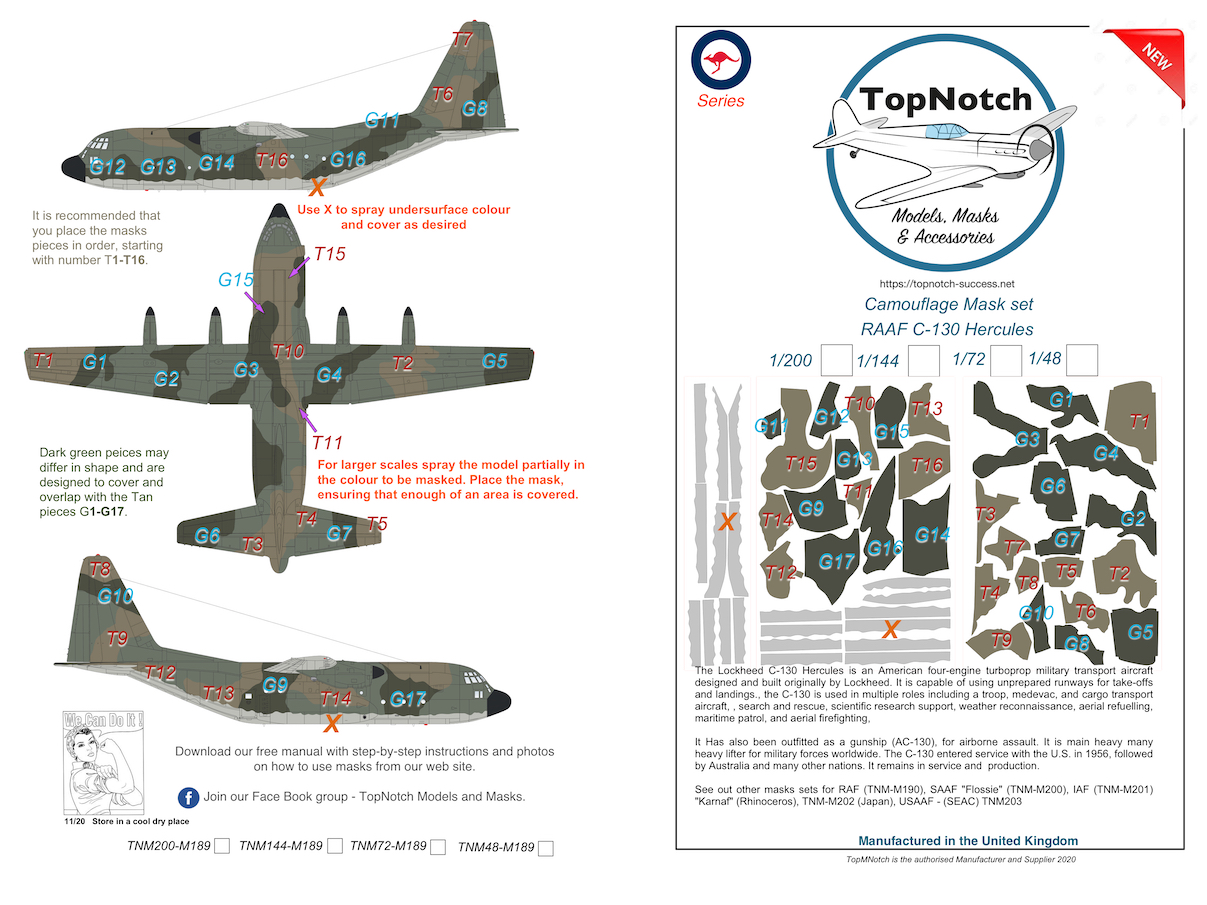 Top Notch - 1/144 Raaf Lockheed C-130 Hercules camouflage pattern paint mask (for kits)