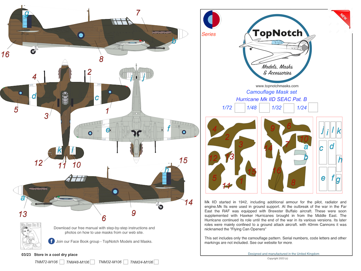 Top Notch - 1/72 Seac Hawker Hurricane Mk.IID Pattern B Camouflage pattern paint masks