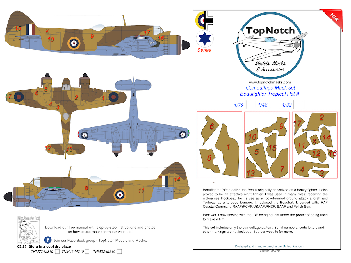 Top Notch - 1/32 Bristol Beaufighter tropical Pattern A camouflage pattern paint masks