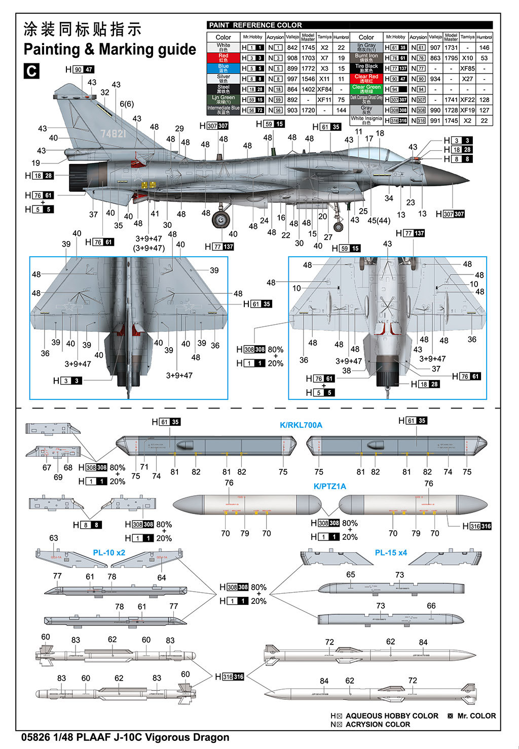 Trumpeter - 1/48 Plaaf J-10C Vigorous Dragon
