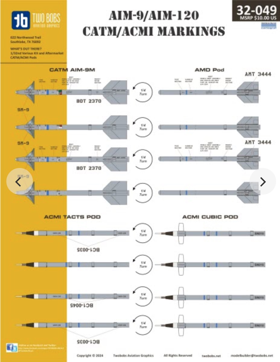Two Bobs - 1/32 Markings for Catm AIM-9/AIM-120/ACMI Missiles