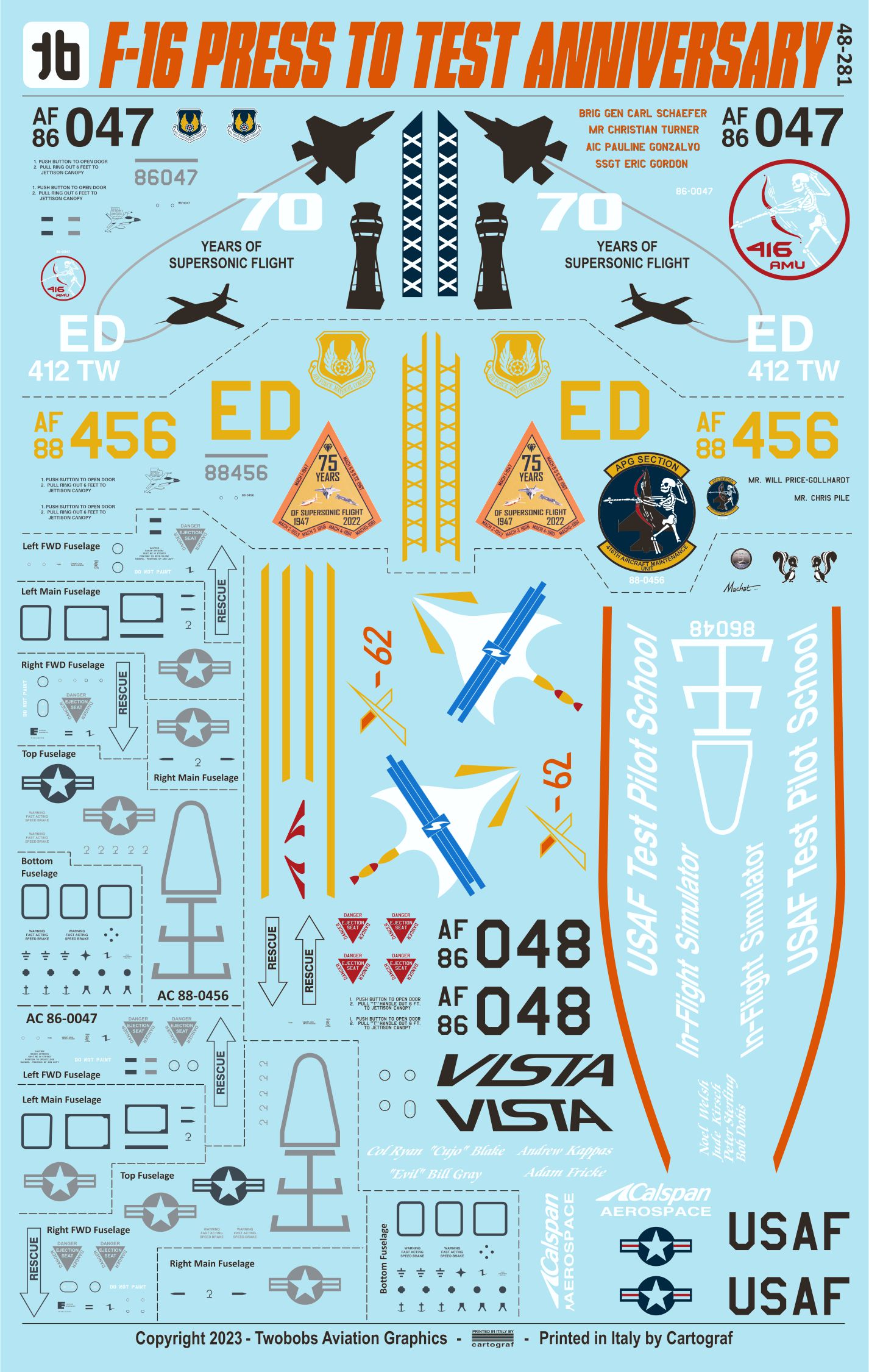 Edwards Afb hosts their annual Open House in October to coincide with this historic event. On occasion a commemorative paint scheme is applied to an Ed aircraft and we have recreated both the 70th and 75th Anniversary schemes on this sheet.