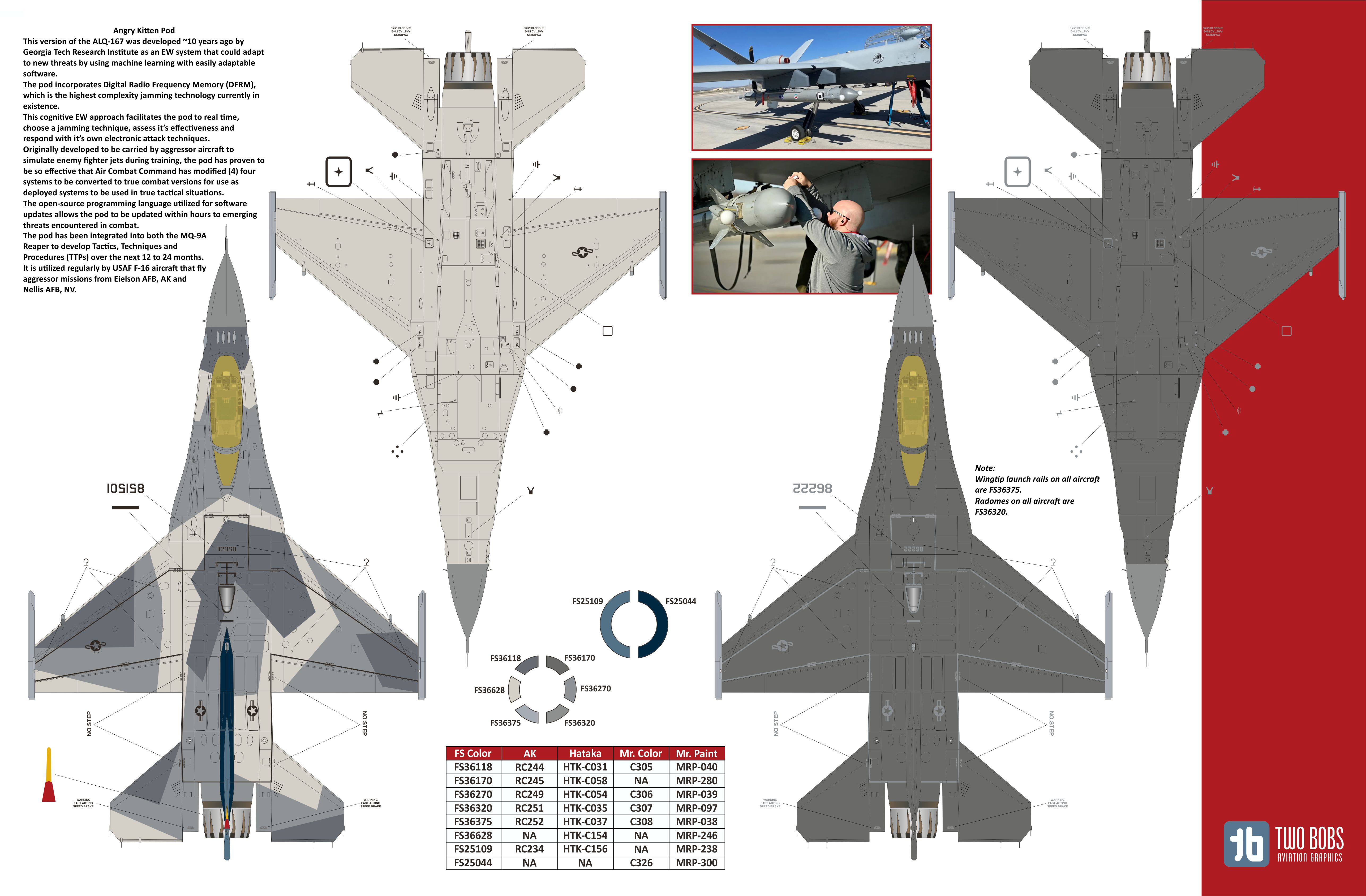 Stencils are included both both the Tamiya and Kinetic kit along with unique markings for five different options of the AN/ALQ-167 'Angry Kitten' EW/EA Pod.