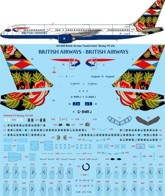 Twosix Silk - 1/144 British Airways 'Grand Union' Boeing 757-236 laser decal with screen print details