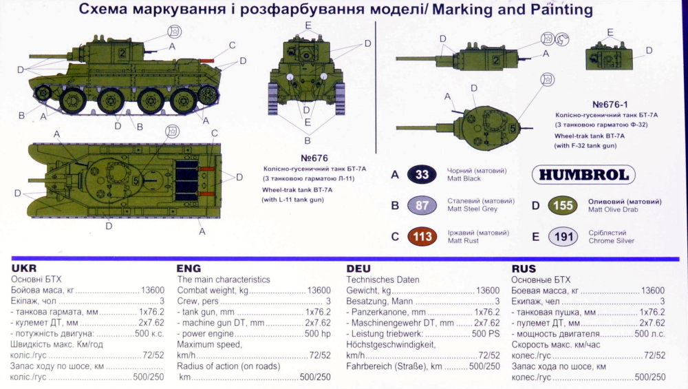 UNIMODEL - 1/72 Wheel-track Tank BT-7A with L-11 Tank Gun
