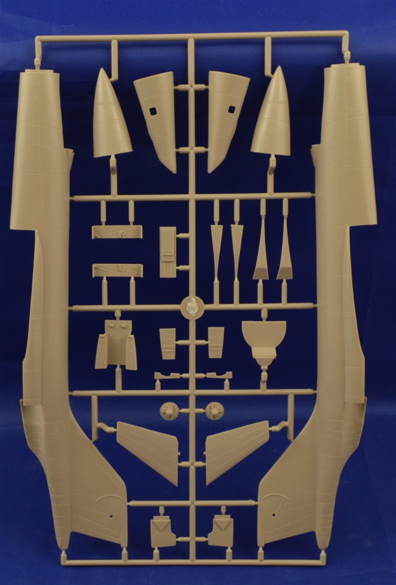 The kit includes three sprues with main parts and details, one sprue with clear parts, resin (PUR) parts and a fret with p/e parts.