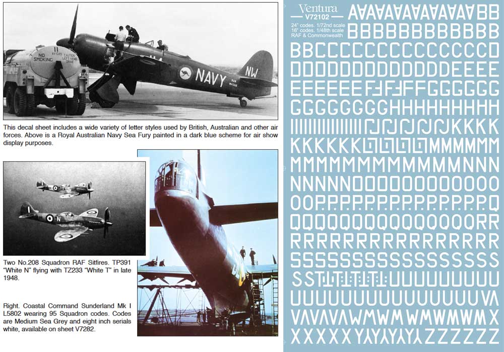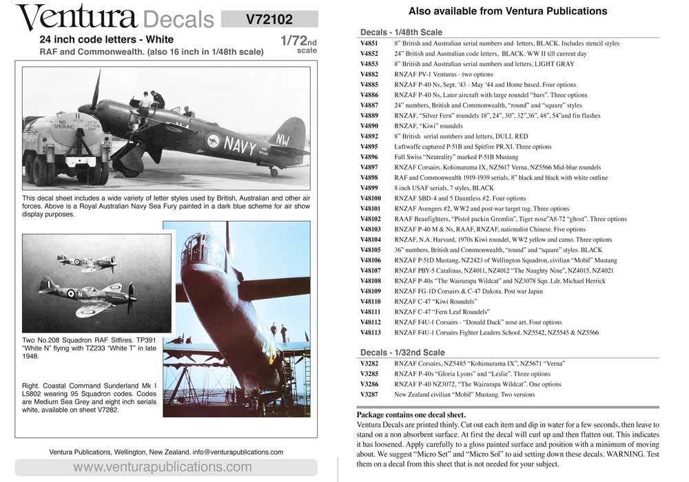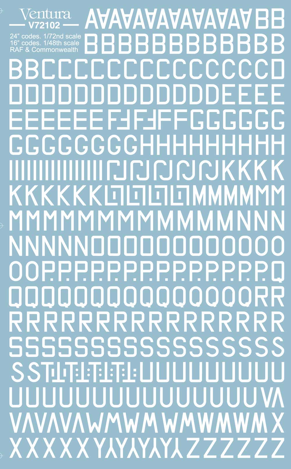 Ventura - Raf and Commonwealth white code letters 24" in 1/72 are 16" in 1/48th scale