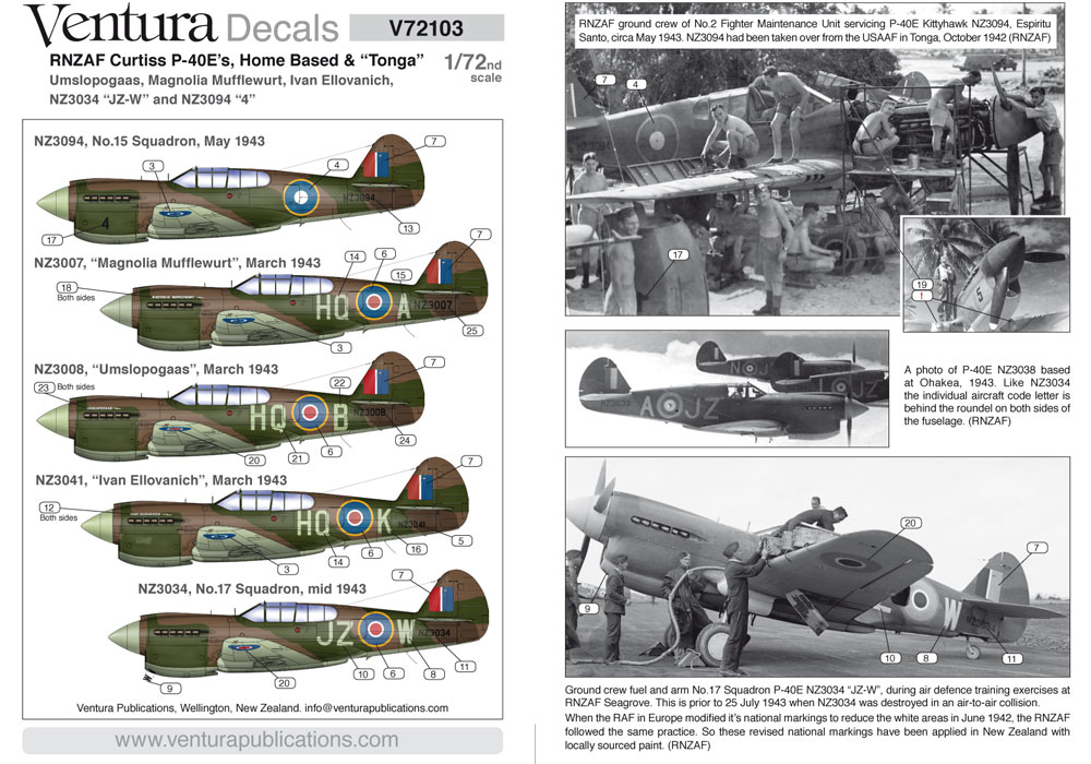Ventura - 1/72 Rnzaf Curtis P-40Es, 'Umslopogaas', 'Magnolia Mufflewurt', 'Ivan Ellovanich', NZ3034 'JZ-W', and NZ3094 ex 68th Pursuit Group.