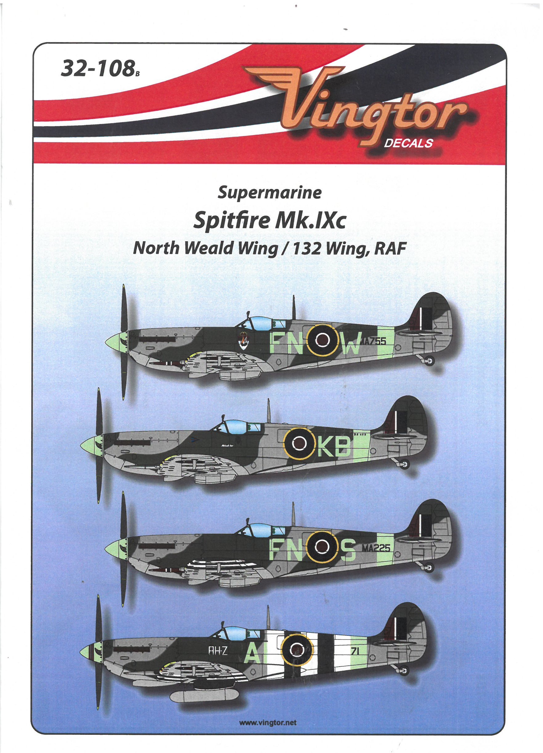 Vingtor - 1/32 Supermarine Spitfire Mk.IXc North Weald 132 Wing Raf (5) EN177 AH-X or AH-T 332 Sqn 1943, MJ462 Rab Wg/CO Rolf Arne Berg, MA225 FN-S, MA755 FN-W, BS458 KB.
