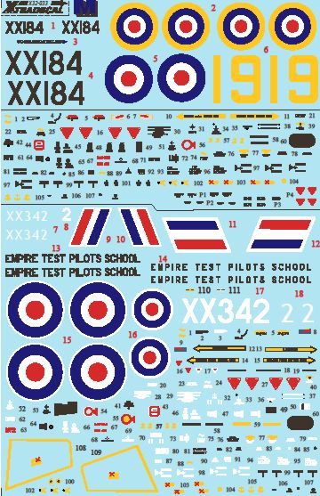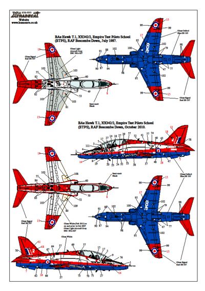 Xtradecal - 1/32 BAe Hawk T.1/T.1A (2) XX343/2 Empire Test Pilots School (ETPS), Boscombe Down July 1987. Was 7.99. Temporarily Save 1/3RD!!! Raspberry Ripple scheme with red fin and rudder and rear fuselage with white front fuselage, Oxford blue undersurfaces, light aircraft grey inner wings top, red wing tips.