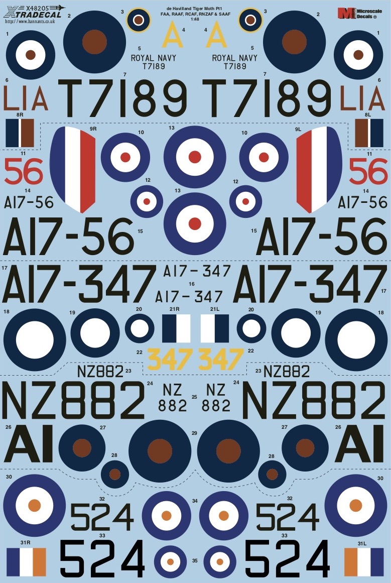 Xtradecal - 1/48 De Havilland DH.82a Tiger Moth Pt1 FAA, RAAF, RNZAF & SAAF (4)