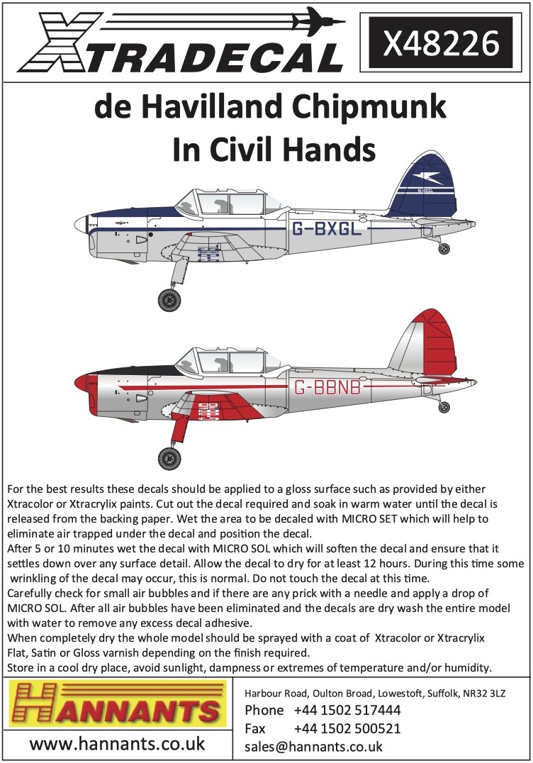 Xtradecal - 1/48 De Havilland Chipmunk In Civil Hands (6)