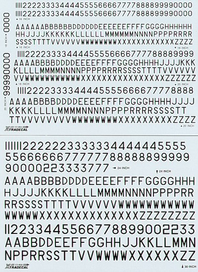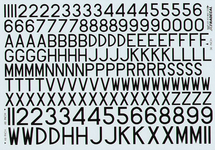 1/72 RAF Post War Serial Letters and Numbers, Black. 16", 18 ",