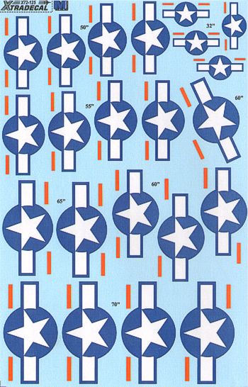 Xtradecal - 1/72 U.S. National Insignia. Stars and Bars with optional red bar. 1942 to Current. Larger sizes. 32 , 50 , 55 , 60 , 65 , 70 .