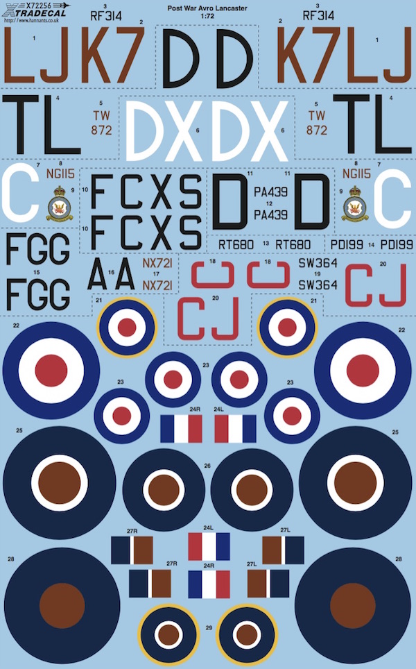 Xtradecal - 1/72 Post War Avro Lancaster 1946 - 1950 (8) Looking for a change from Dk Green/Earth and Black aircraft then look no further.