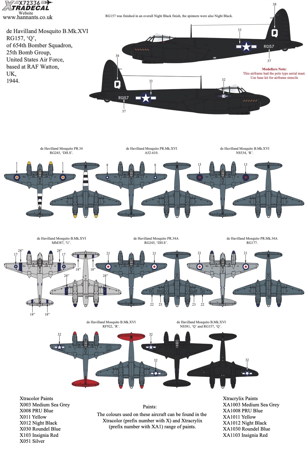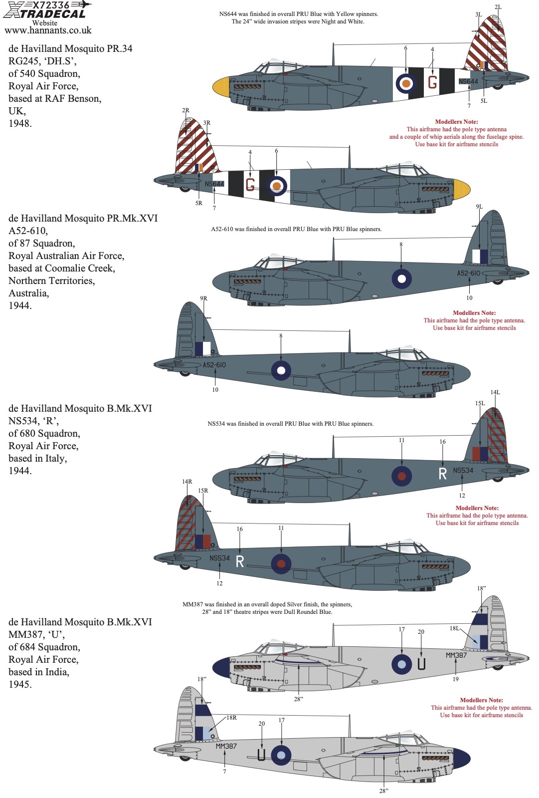 Xtradecal - 1/72 De Havilland Mosquito B.Mk.XVI & PR.34 Collection (8)