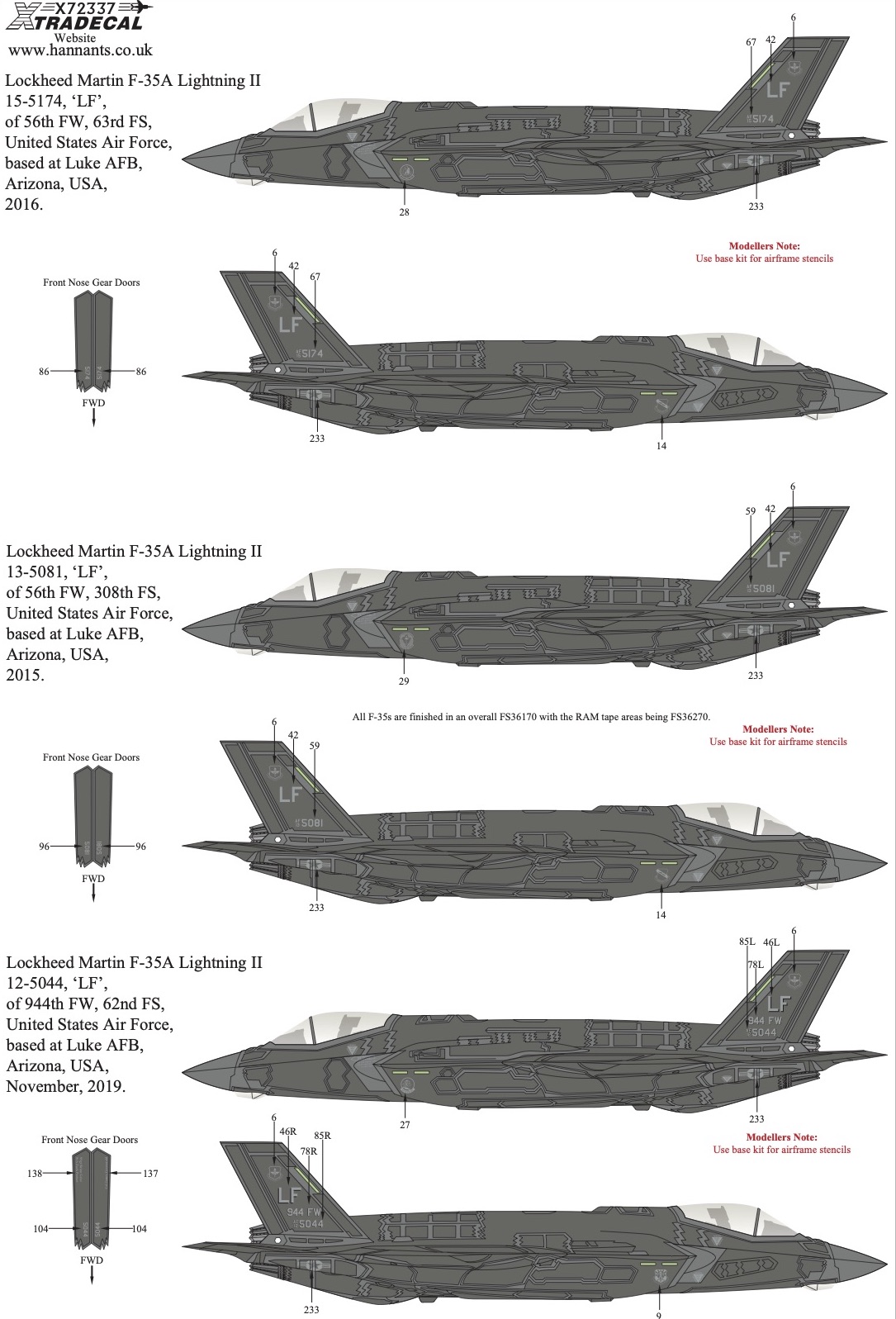 Lockheed-Martin F-35A Lightning II 15-5174, 'LF', of 56th FW, 63rd FS, United States Air Force, based at Luke AFB, Arizona, USA, 2016.