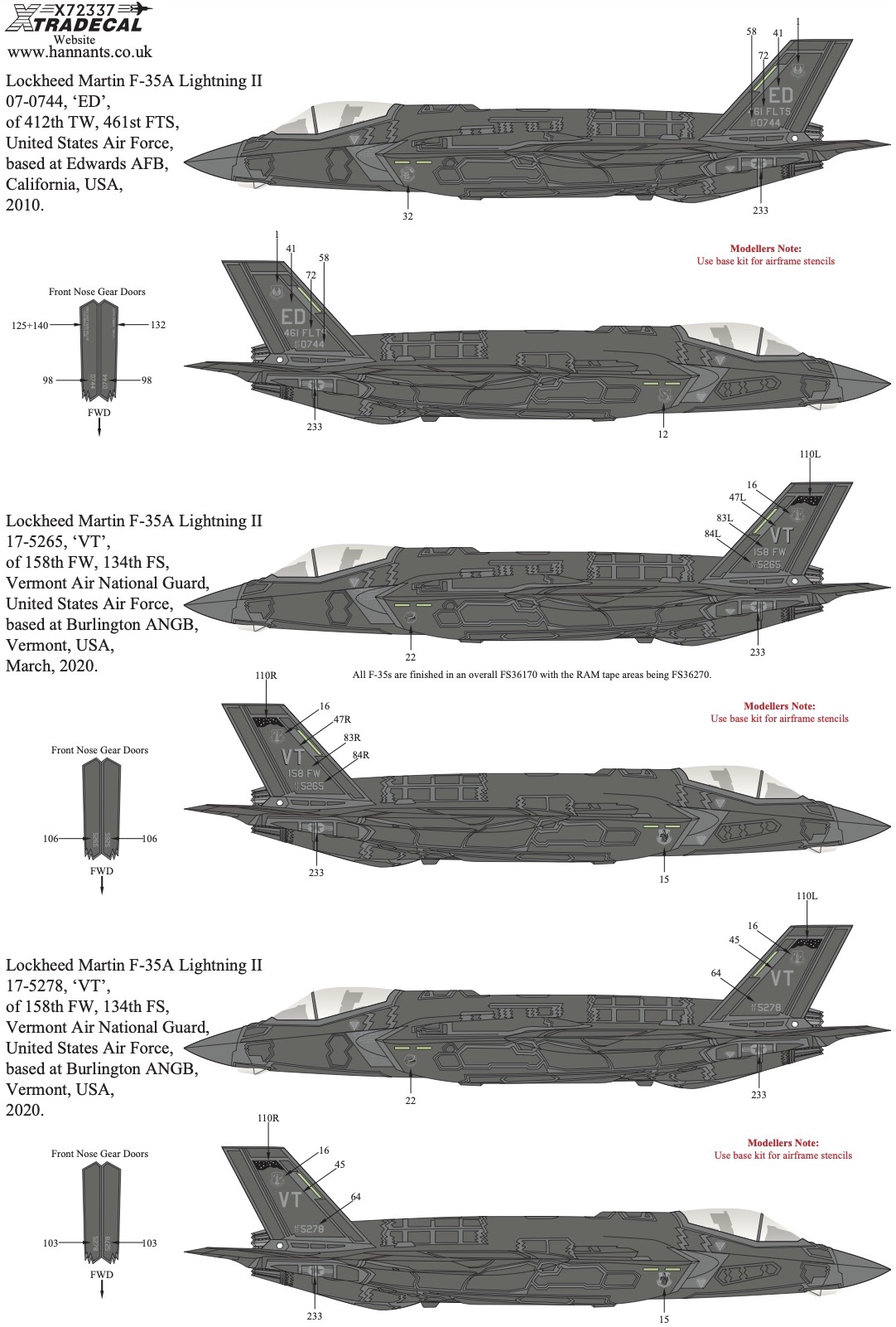 Xtradecal - 1/72 NEW!!! Lockheed-Martin F-35A/B Lightning II (33 aircraft)