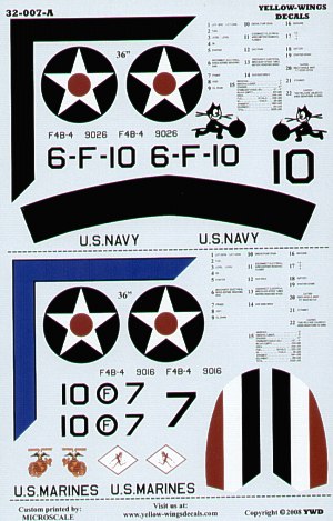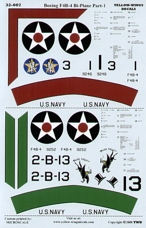 Yellow Wings - 1/32 Boeing F4B-4 (4) 6-F-10 VF-6 White fin U.S.S. Saratoga 1934, 3-F-1 VF-3 Willow green fin U.S.S. Ranger 1935, 2-B-13 VB-2 Yellow fin U.S.S. Lexington, 10 F 07 VF-10M USMC 1932, Triple sheets