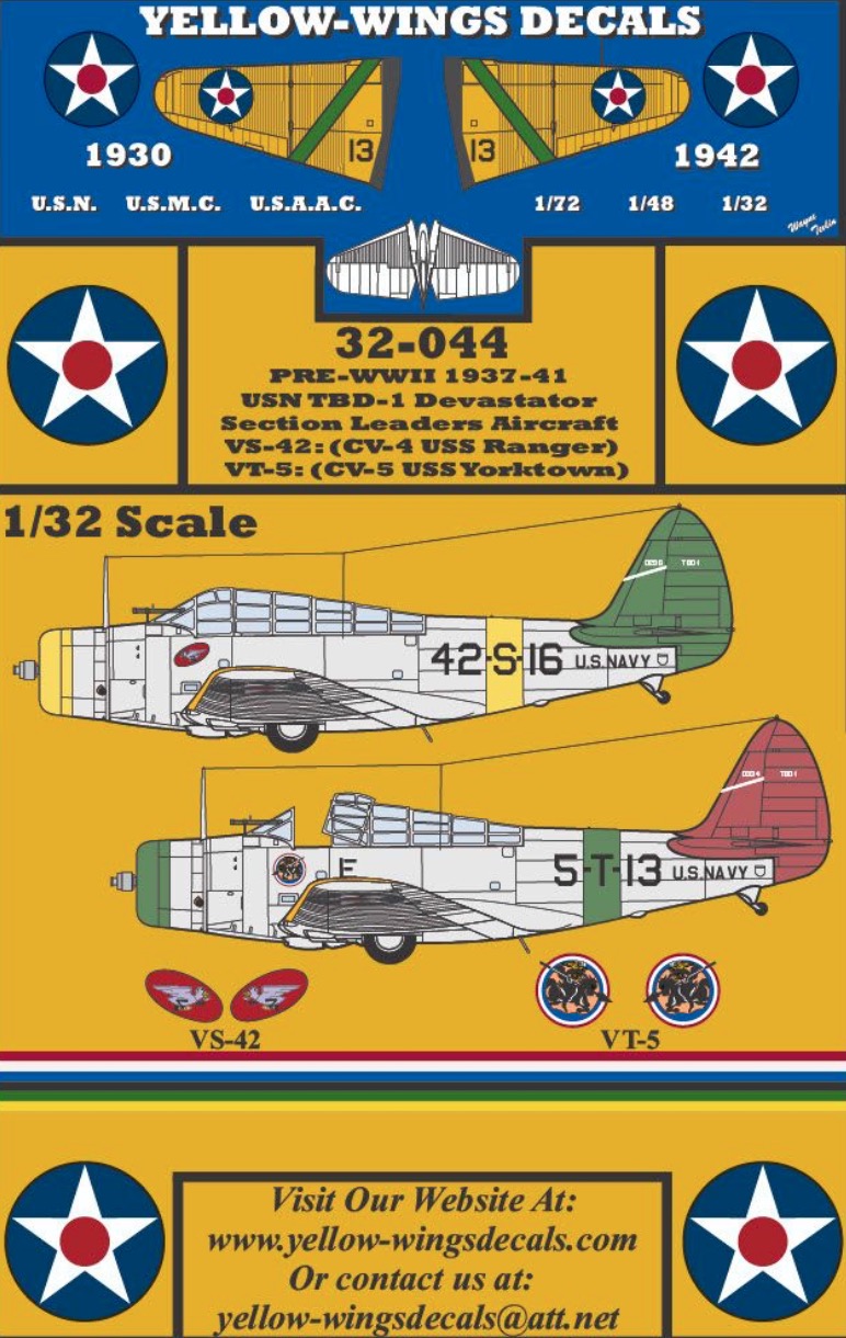 Yellow Wings - 1/32 U.S. Navy Pre-WWII Douglas TBD-1 Devastator, VS-42 Uss Ranger, VT-5 Uss Yorktown