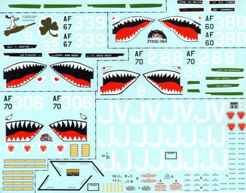 Zotz - 1/32 F-4E Phantom 388th TFW at Korat RTAB 1968 coded JJ and JV all with shark mouths Pt 2 (10) 68-313 Spunky VI, 70-342 Easy Rockin Mama II, 70-279 Wreckin Crew, 70-268 TD's Teeloc, 70-309 El Toro Bravo, 80-332 Little Chris, 60-380 Diane, 67-339 Shamrock, 70-268 Paper Tiger, 70-306 War Lover. Includes a brief history of each Phantom.