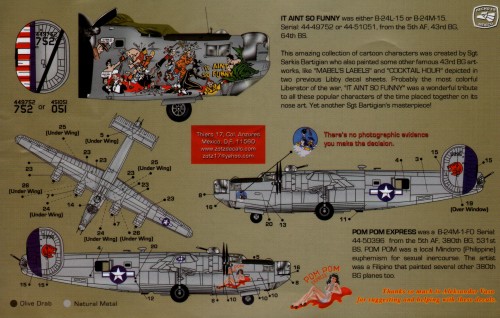 Zotz - 1/48 Consolidated B-24M Libby Gals Part 4 (2) 44-49752 64th Bs 43rd Bg `It Ain't so Funny' with spectacular Popeye nose art, 44-50396 531st Bs 380th Bg `Pom Pom Express'.