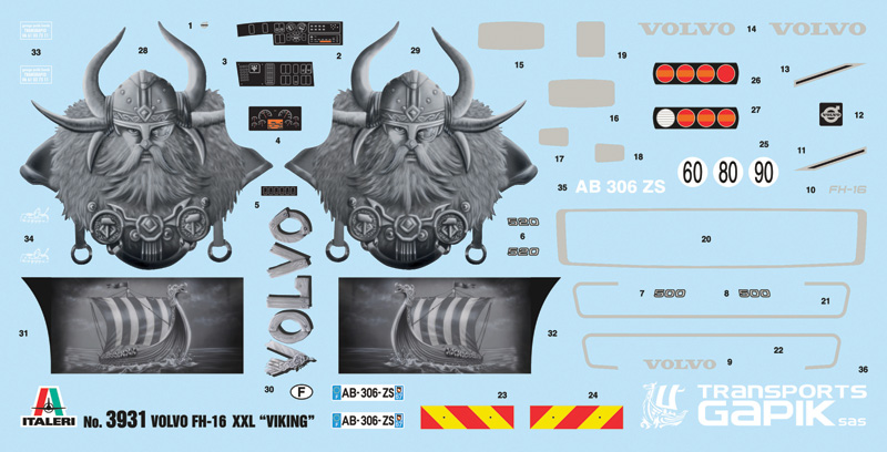 The FH series can be considered a milestone in Volvo industrial vehicle production. Introduced to the market since 2001, it was released in numerous versions and variants. In details, the Volvo FH16 has been the reference version of the Volvo trucks line up. Powered by a 16 liter engine, capable of delivering 610 HP, it was characterized by a good power and low running costs. For those times, Volvo FH16 introduced advanced electronic solutions able to ensure a safer and more comfortable driving even in the long range delivery duties. The FH-16, well-known for its commercial success, has been the basis for many Show Truck characterized by impressive and high visibility customized livery. The Viking is a good example of Show Truck. The adoption of the bull bar with the grilles to protect the front lights, the installation of additional headlights, the choice of colors and the Nordic inspired graphic create a unique truck with a strong personality.