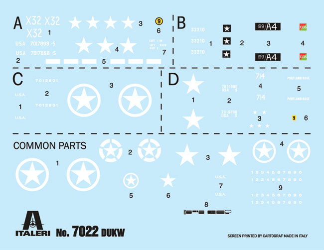 Italeri - 1/72 Gmc Dukw 353 Amphibious truck. New Super Decals Sheet For 4 Versions Color Instruction SHEET