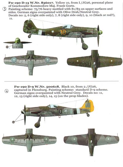 Karaya - 1/48 Captured Butcherbird Part 3 (5) Focke-Wulf Fw-190F-8 G9-T 509thFS/404thFG, Focke-Wulf Fw-109G-3 W.Nr 160016 Tested at Wright Fielkd 1944, Focke-Wulf Fw-190D-13 Yellow 10 from I./JG 26, Focke-Wulf Fw-190G-3 W.Nr. 160043 tested at Wright Field overpainted in US OD/Neutral Grey camouflage