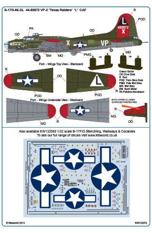 Kits-World - 1/32 Scale Boeing B-17G-95-DL Flying Fortress 44-83872 VP-X 'Texas Raiders' 'L' Caf Recommended Kit HK-Models B-17G (01E04)