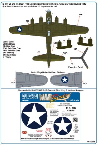 Kits-World - 1/32 Scale Boeing B-17F-25-BO Flying Fortress 41-24554 'The Mustang/Lady Luck' 403/63rd Bs 43rd Bg 5th Af