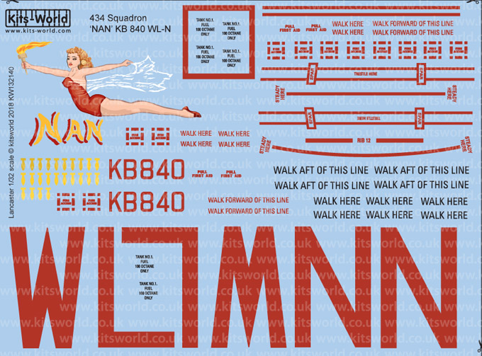 Kits-World - 1/32 Avro Lancaster Bomber 'B' MkI - 434 Sqaudron 'Nan' KB840 WL-N.